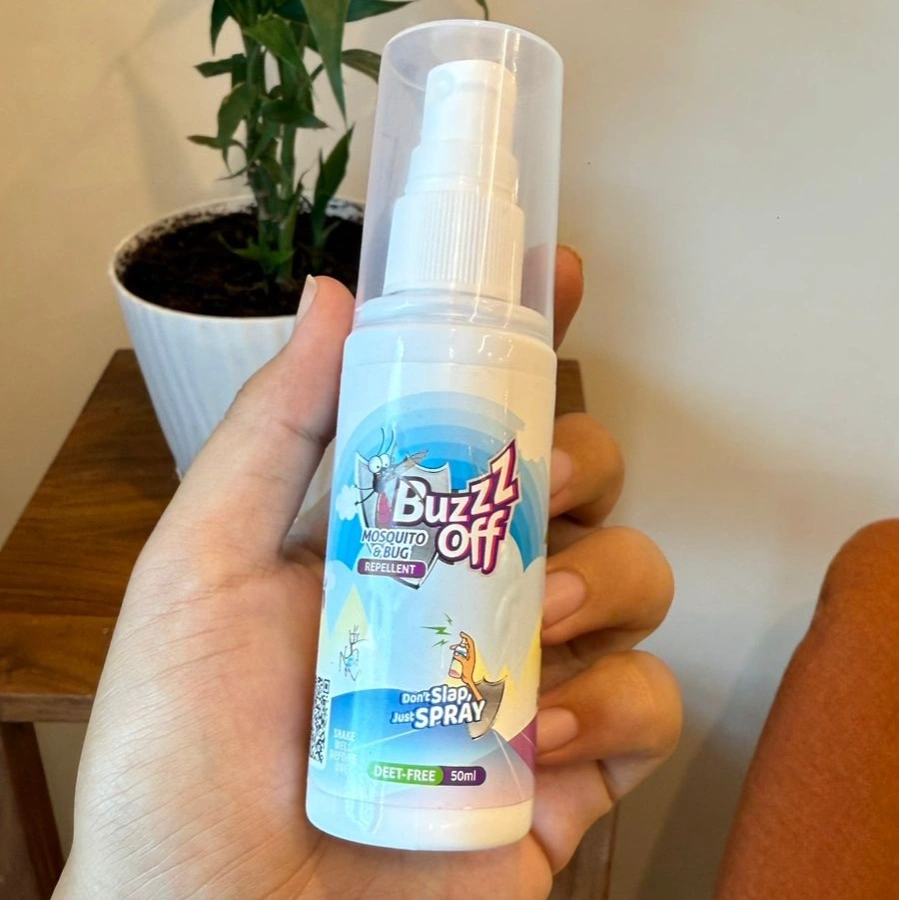 Buzzz Off is a 100% natural, child-friendly mosquito and bug repellent designed to protect against mosquito bites and diseases like dengue. Made from essential oils such as citronella, clove, eucalyptus, neem, cinnamon, and mint, it offers safe and effective protection. Available in spray and roll-on formats, Buzzz Off comes in two strengths regular and a booster version with five times more citronella. Its convenient roll-on is ideal for students and on-the-go use, making it perfect for both home and travel.